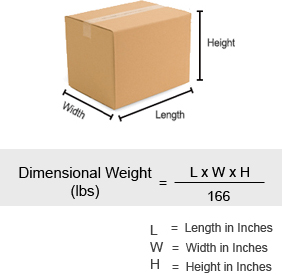 The Dimensional Weight (L x W x H / 5000) is greater than the Actual Weight of the package and will be used for rates calculations.